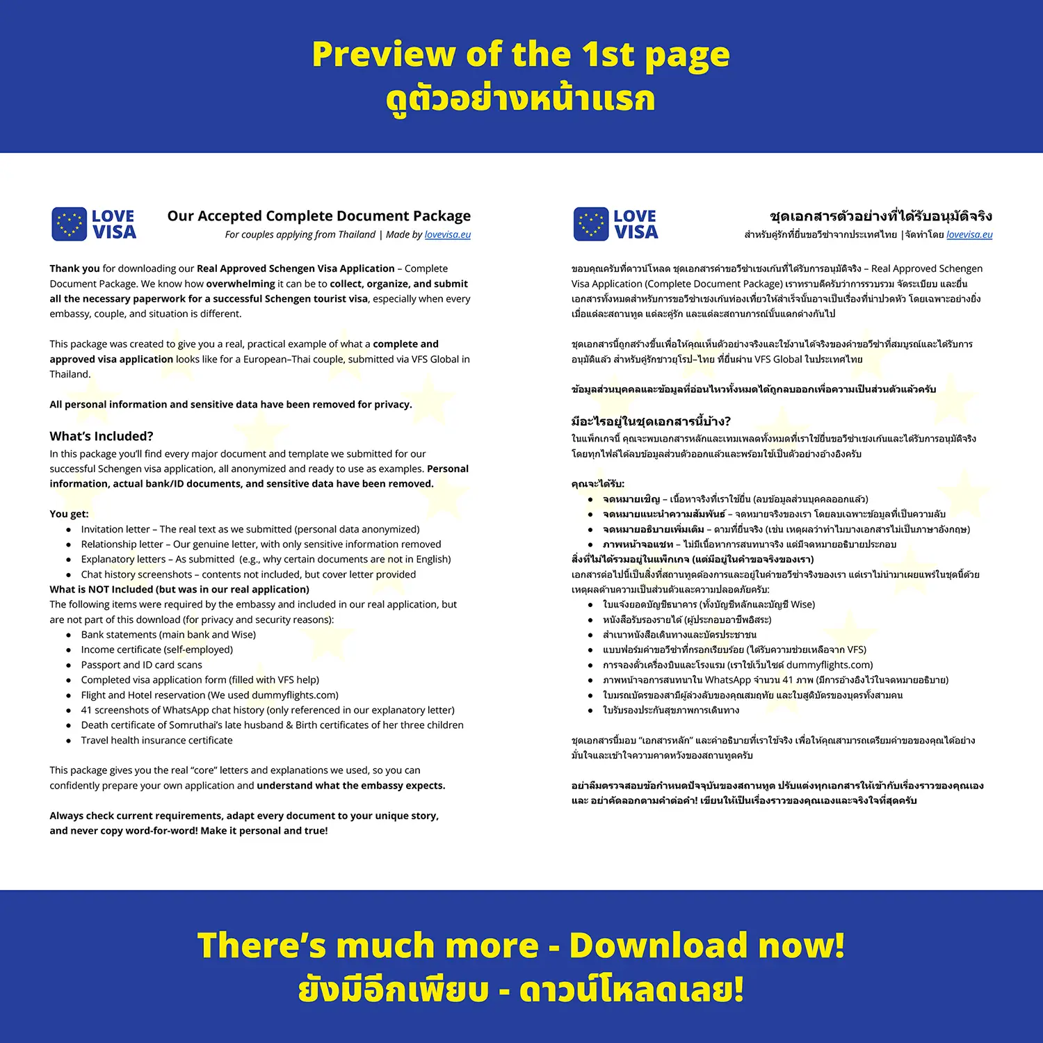 You don’t only get templates… you also get a real Schengen visa application that was approved, used by us and by other couples as well.